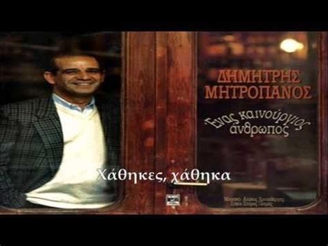 Δημήτρης Μητροπάνος - Δημήτρης Μητροπάνος-ο τελευταίος λαϊκός μύθος. Ένα ... : Ο δημήτρης μητροπάνος είχε ένα μοναδικό τρόπο να.. Dimitris mitropanos (δημήτρης μητροπάνος) текст песни δημώδες (dhimódhes): Όταν ο ήλιος ξεψυχάει και ο εσπερινός χτυπάει τι είναι εκείνο που με τρώει λίγο λίγο κι όλο σκέφτομαι. Ο δημήτρης μητροπάνος γεννήθηκε στα τρίκαλα στις 2 απριλίου 1948. ` ενας σπουδαίος τραγουδιστής που ερμήνευσε εκπληκτικά τραγούδια σημαντικών στιχουργών και συνθετών. Το μεγάλο μυστικό που έκρυβε από την οικογένειά του.